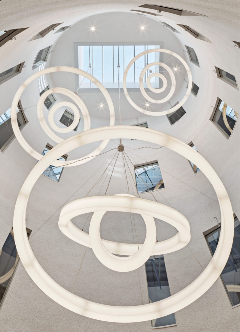 Daylight was critical to creating a healthy and energy-efficient learning environment at Arlington High School. Curtain walls, windows, skylights, and dynamic, multi-story lightwells bring natural light into the most central spaces of the compact five-story building. Additionally, tunable lighting supports student well-being and academic performance. Offering adjustable color temperatures and intensities that mimic daylight, tunable lighting allows educators to customize classroom lighting according to specific activities and learning needs.