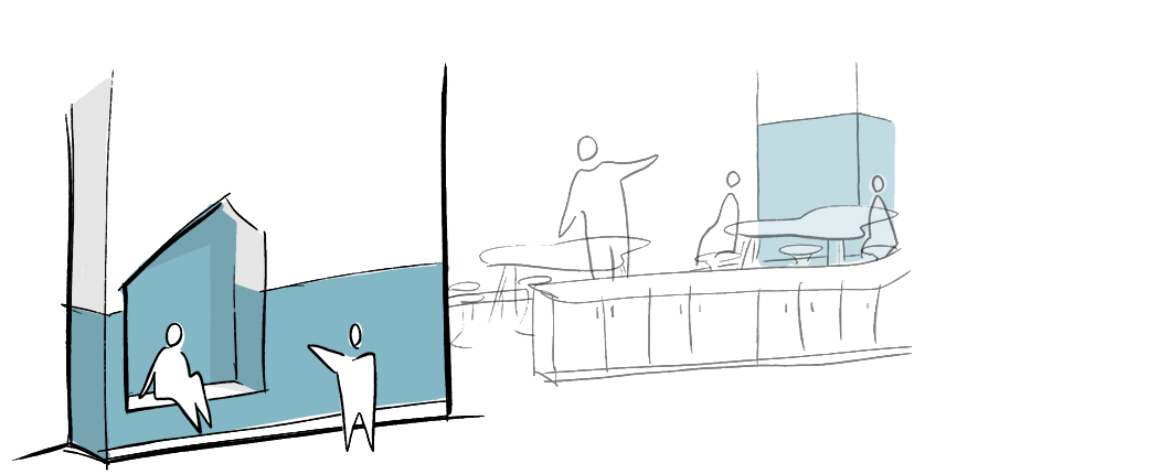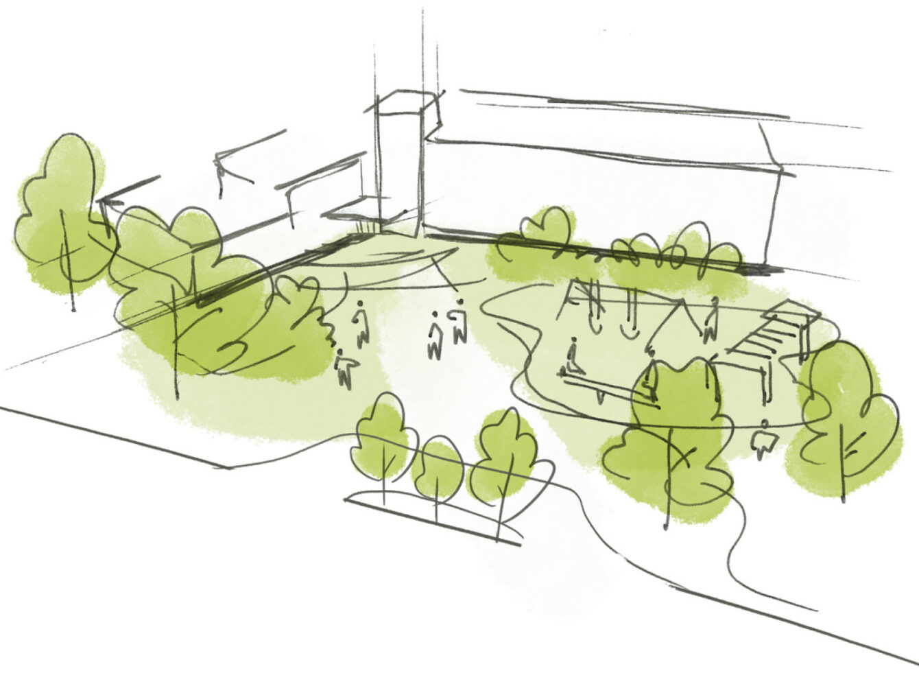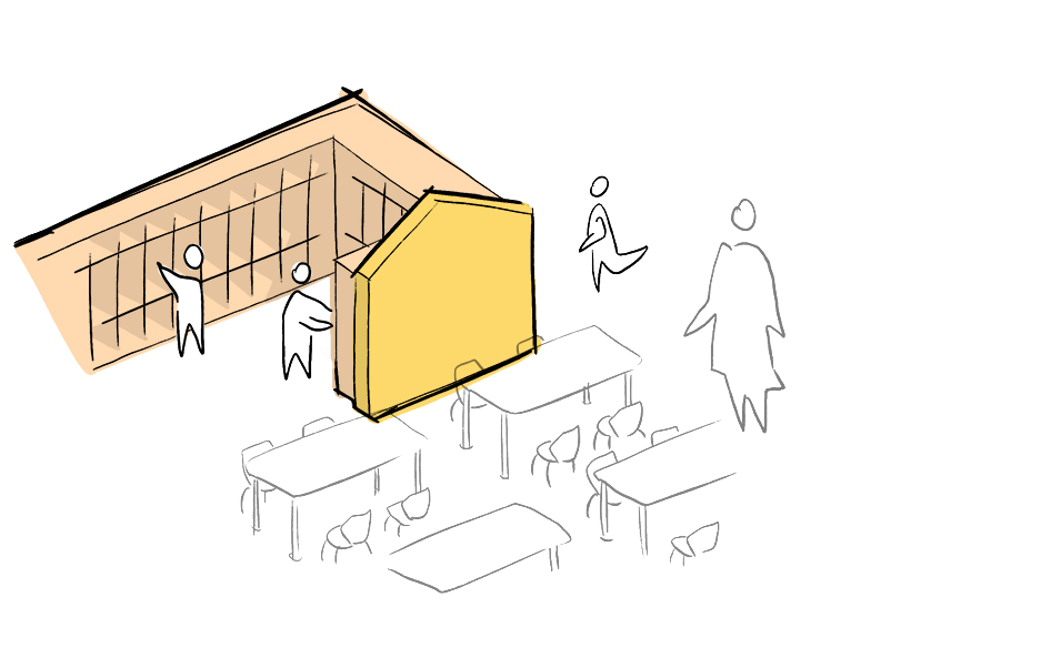 Conceptual sketch illustrating how the school’s massing creates an open and inviting entry sequence